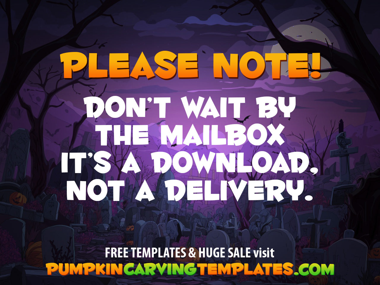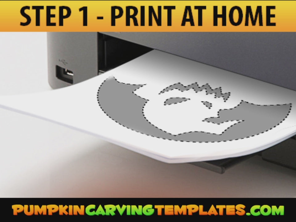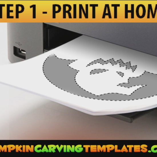 Just print at home, pin on the pumpkin, then start carving. Or you can use a pin to make a dotted line, by poking along the paper pattern, then removing it and follow your dotted line! Its that easy!